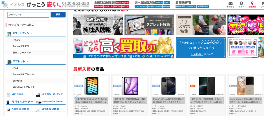 - SIMフリー端末の在庫が豊富