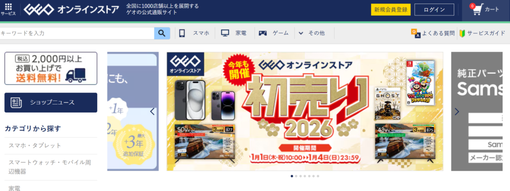 ゲオオンラインは全国展開の大手リユースチェーンが運営する中古スマホ販売サービスです。知名度が高く、実店舗が多いため、初めて中古スマホを購入する人でも利用しやすい点が特徴です。価格は比較的安く設定されており、コストを抑えたい人に向いています。