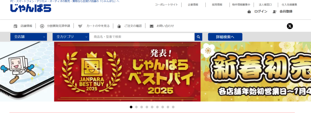 じゃんぱらはデジタル機器に強い中古専門店で、専門性の高さが特徴です。端末情報が詳細に記載されており、SIMフリー端末やマニアックな機種を探している人に向いています。