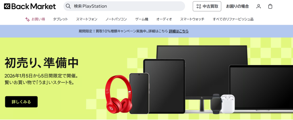 Back Marketは海外発のリファービッシュ専門マーケットプレイスです。検品・整備済み端末を販売しており、全商品に保証が付く点が特徴です。