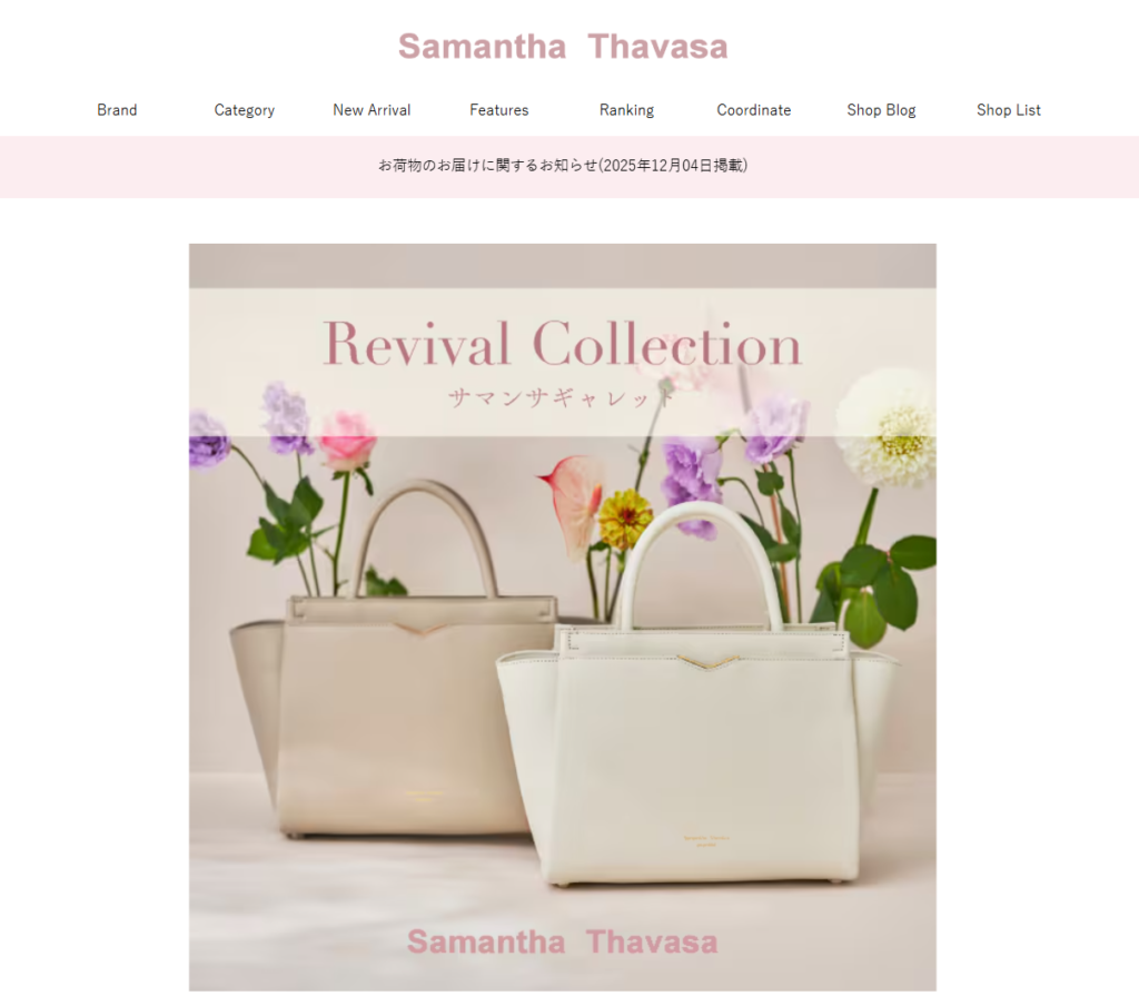 サマンサタバサは、20代女性が「初めて持つブランドバッグ」として最も選ばれている日本発ブランドです。