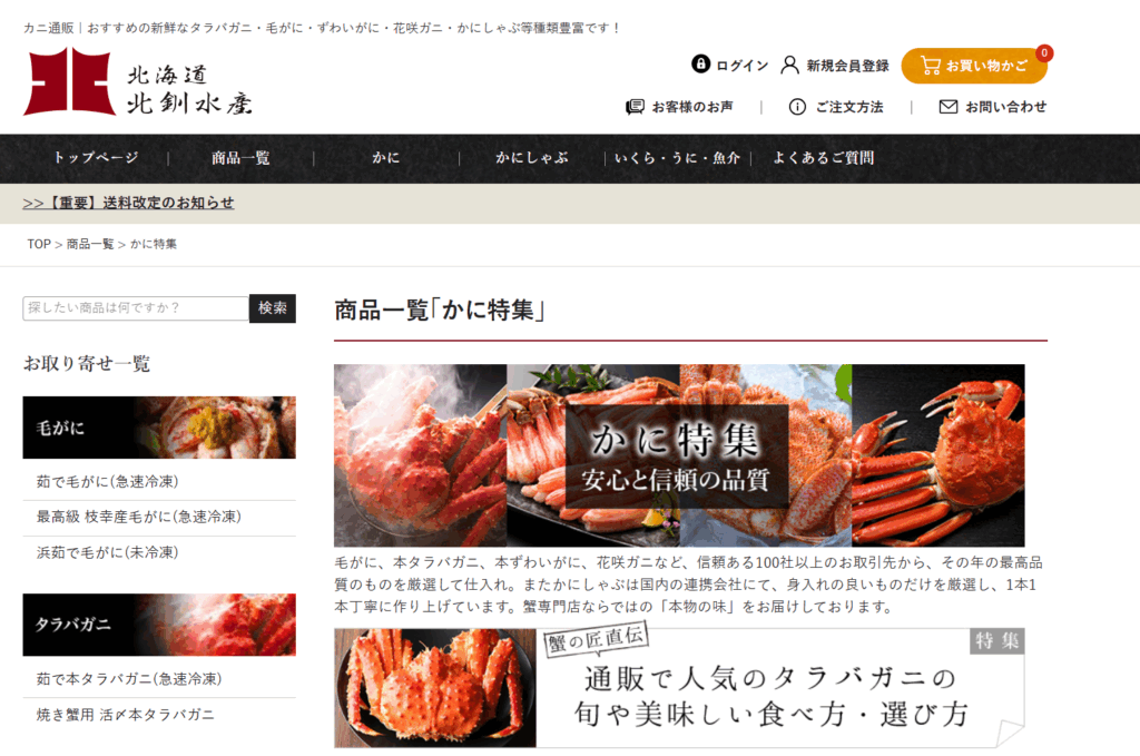 北釧水産の「かに特集」ページで紹介されている目玉商品。