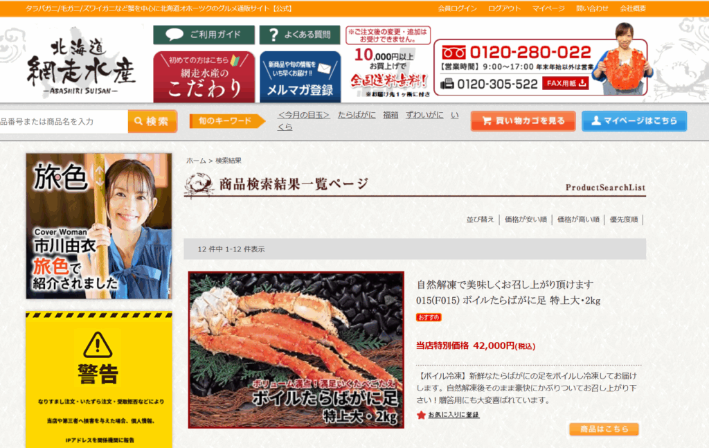 特に「タラバガニ脚1kgセット」は大人気。